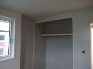 玄関ホールからリビング、水廻りにかけて各部屋の建具枠を次々取り付けていきました。